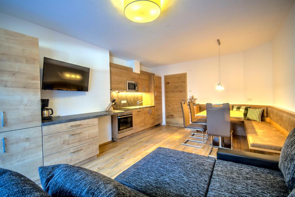 Newly built apartment house, 700 m from the Isskogelbahn valley station, direct access to the ski area possible, with good snow conditions downhill skiing to the house; in summer our house is an ideal starting point for many hikes. Top 1 apartment on the ground floor 80 m², wheelchair accessible, 2 bedrooms, 2 bathrooms, sauna integrated in the bathroom, terrace Top 2 apartment in the attic - 135 m² for 12 persons, 5 bedrooms, 3 bathrooms, sauna in the apartment, 4 rooms and eat-in kitchen with balcony Both apartments furnished and fully equipped in modern Tyrolean style; bed linen and towels available, bathrobes on request for a fee, towel change once a week. Garage for motorcycles and bicycles; both apartments have their own lockable ski room with shoe dryer Sufficient parking spaces available