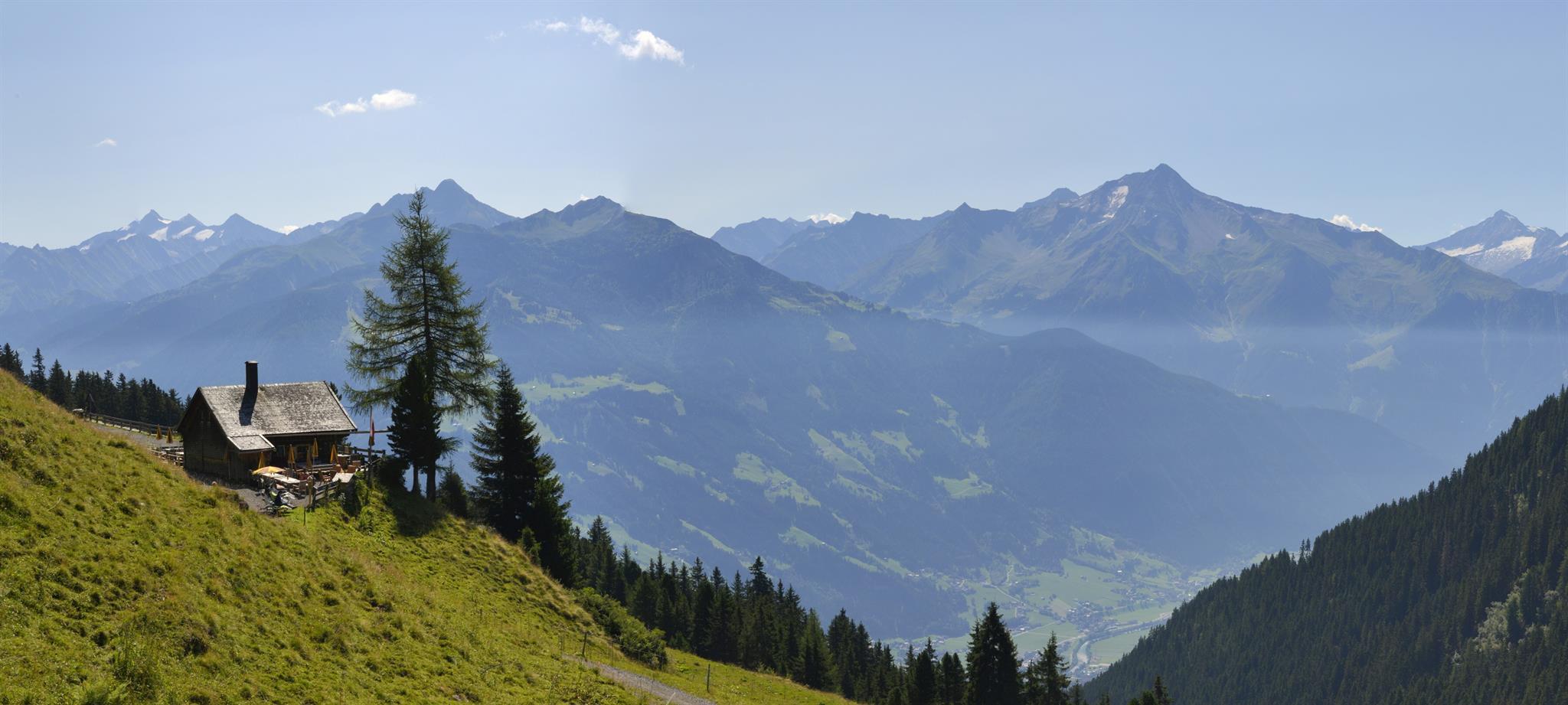Our hut is situated on 1800 m and is from grasslands surround. There you can enjoy a wonderful view of the zillervalley mountain area.