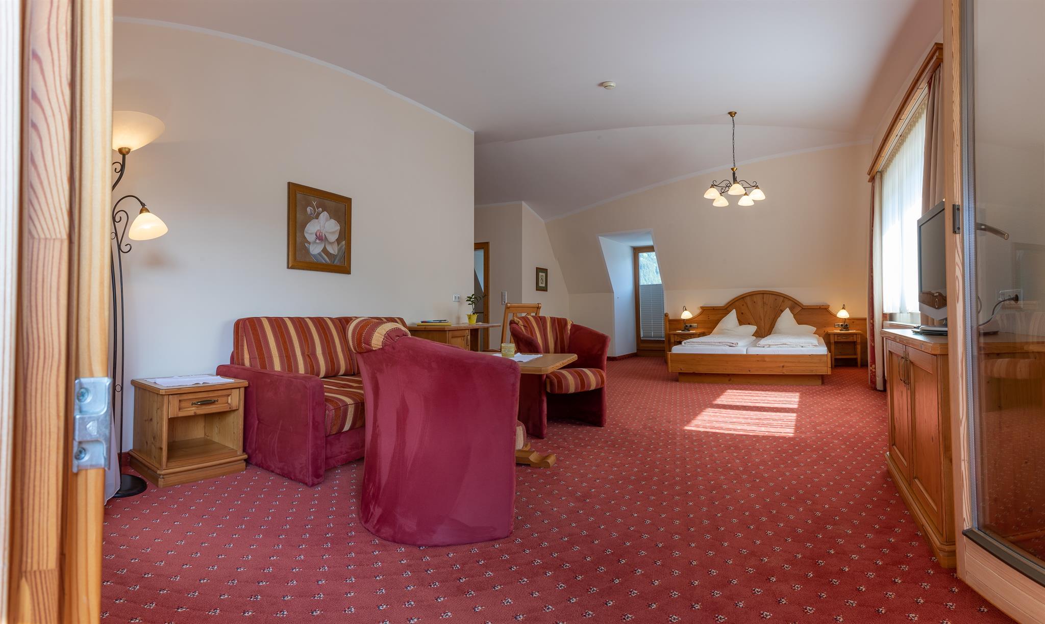Our juniors Suites can accommodate 2 to 4 people, also available as family rooms with living area (for 4 people with pull-out couch as double bed).
