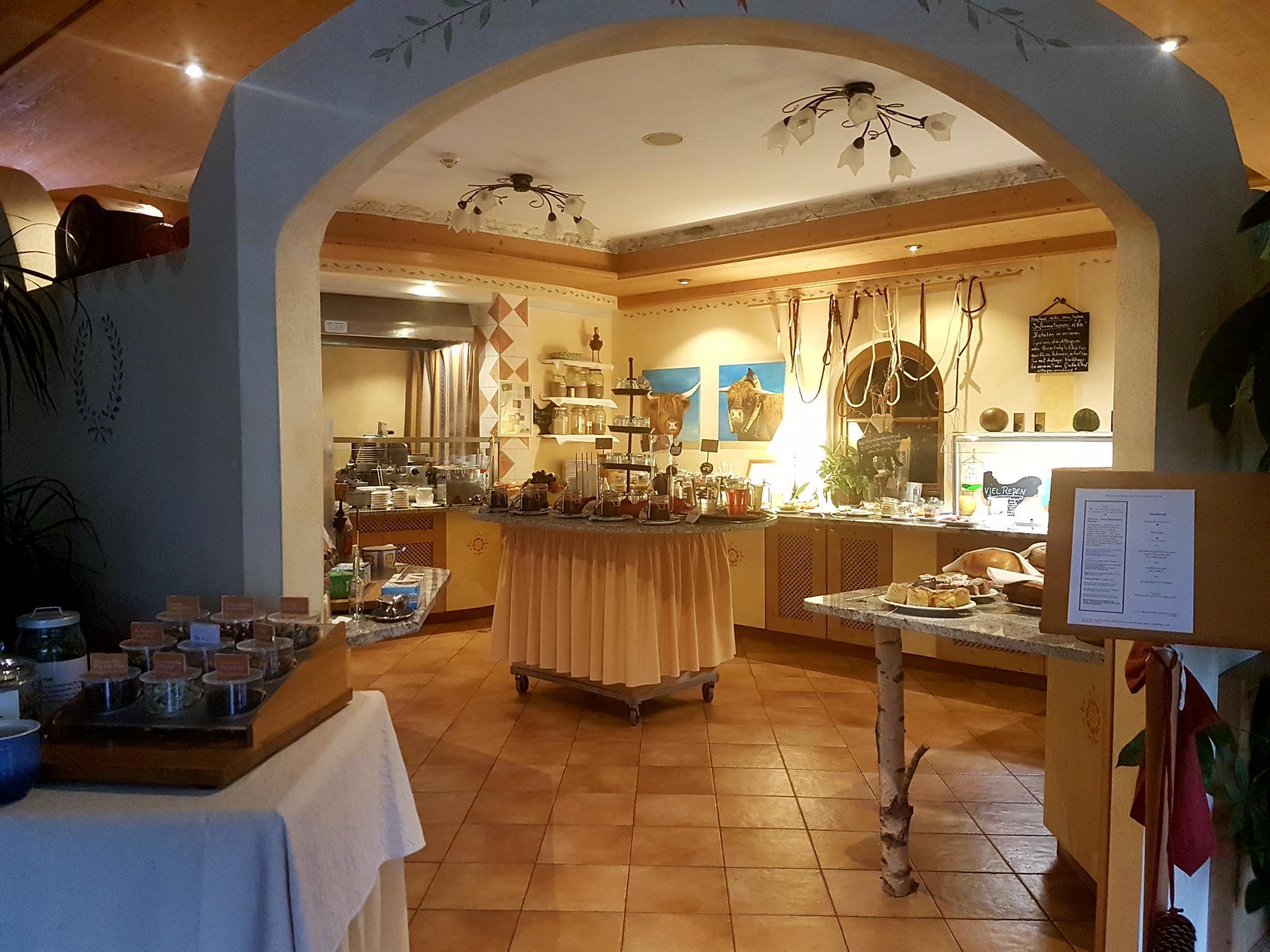 Half-board includes an extensive breakfast buffet and a 4-course dinner with a choice of dishes and a salad buffet. Most products come from the hotel’s own organic farm.