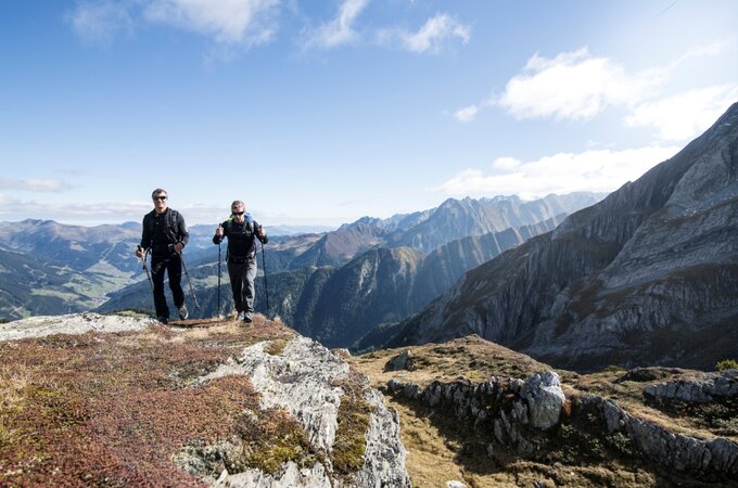 The third day begins with a leisurely walk alongside the Gerlosbach stream and then along the banks of the Gmünder reservoir to the Kühle Rast tavern. From there an agricultural track leads through the Schwarzachtal valley past the Schwarzachalm mountain hut to the Untere Schwarzachalm and then up to the Obere Schwarzachalm. From there a hiking trail leads through the bottom of the valley taking us in around 2 hours to Brandbergjoch at an elevation of 2,307 m. A gentle 20-minute descent takes us down towards the Kolmhaus mountain hut. Beforehand, however, we turn left to the Brandberger Kolm, a striking peak at an altitude of 2,700 m offering an unforgettably breathtaking panoramic view. The ascent to and descent from the Brandberger Kolm summit should take us around 2 hours. Overnight in Berggasthof Gerlosstein.
