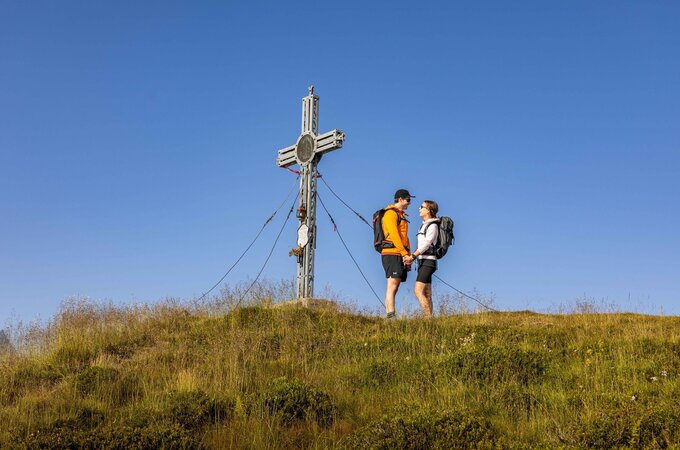 The starting point is the district Unterkrimml. In the area of the organic farm Bergerbauer, a gravel path leads initially and then a hiking trail over meadows and forests to the unmanaged Samalpe. Shortly after the alp you cross the Gerlos Alpine Road and follow the path towards the district Filzstein and from here without ascent to Silberleiten. Now it becomes a bit steeper again, but soon you reach the Gletscherblickalm, which invites you to a cozy rest. Well strengthened you now manage the last meters to the summit of the Plattenkogel. From the summit you have a breathtaking view of the glaciated mountains of the national park, as well as into the Zillertal and Salzach valley. On the way back to the district Filzstein you also pass the rustic BergGeistAlm.
