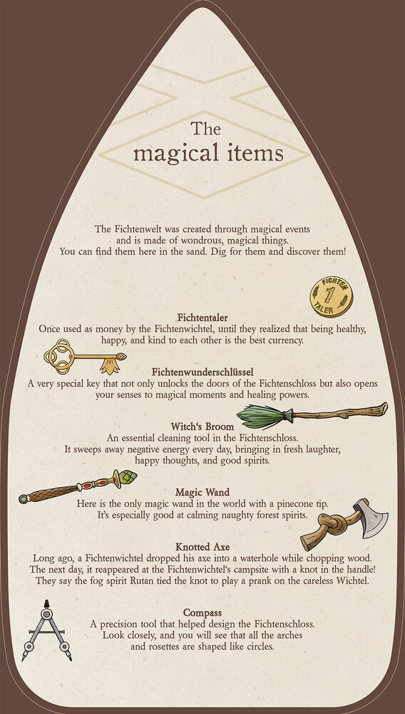 Long ago, a Fichtenwichtel dropped his axe into a waterhole while chopping wood. The next day, it reappeared at the Fichtenwichtel's campsite with a knot in the handle! They say the fog spirit Rutan tied the knot to play a prank on the careless Wichtel.