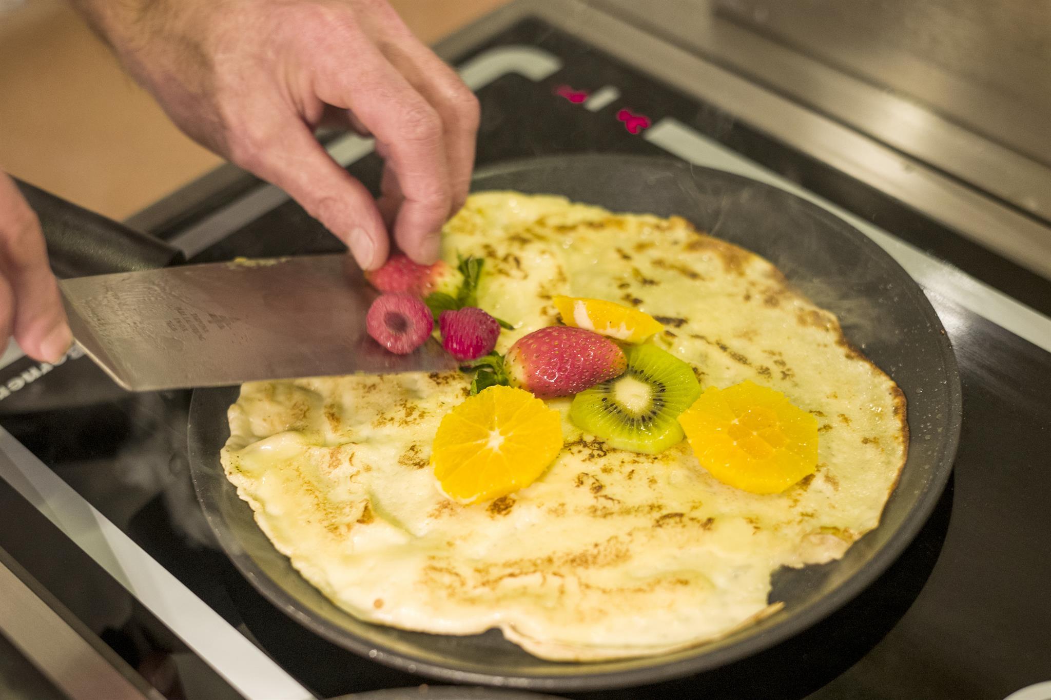 Scrambled eggs - Fried eggs - Omelets in various variations - Palatschinken with fruits - Pancakes