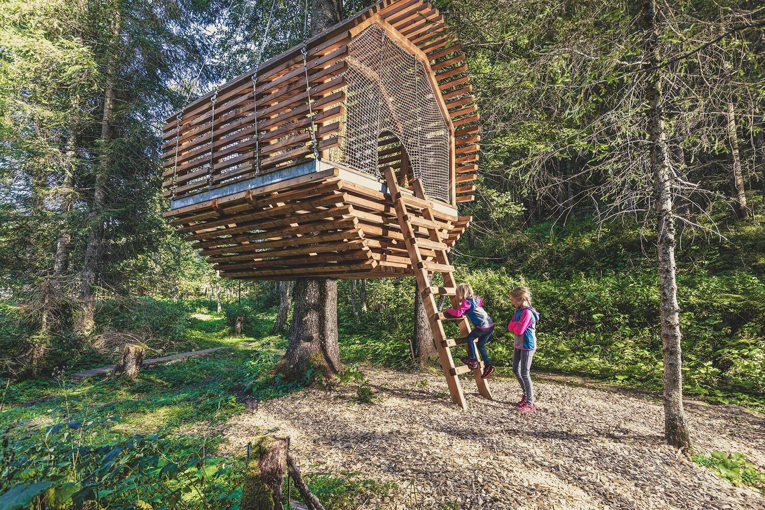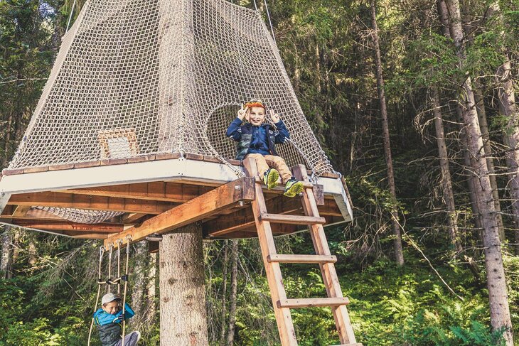 Een bijzonder element in het avontuurland bevindt zich langs de weg aan het meer, vanaf de brug bij het centrum van Gerlos langs de Waldspielplatz tot aan Gerlos Gmünd. Daar bevinden zich op 7 plekken zeer speciale boomhutten. Overal zijn massief hout of natuurlijke materialen gebruikt als bouwmateriaal. De architectuur van de afzonderlijke boomhutten is in vorm en uitvoering aangepast aan het overkoepelende thema. U vindt er bijvoorbeeld een honingraat om doorheen te lopen, een vogelnest, een jagersstoel en nog veel meer. De boomhutten bevorderen en versterken zowel de motorische als cognitieve vaardigheden van de kinderen.
