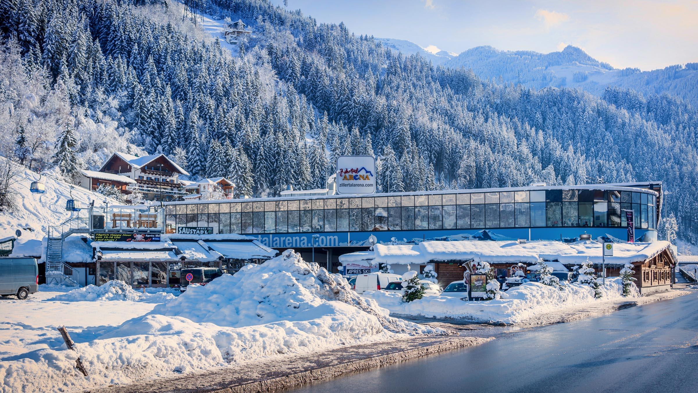 B 169 - Afrit Zell Noord - links onder de onderdoorgang door tot aan het dalstation van de Zillertal Arena - naast het dalstation is er een kleine dijk van waaruit een kleine weg direct naar het Gallahaus leidt.