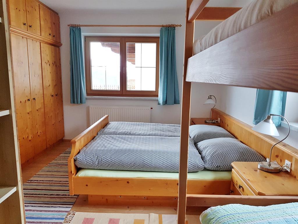 Ons vakantieappartement „Point Zillertalblick“ is een 2-kamer appartement van ongeveer 75 m² woonoppervlak. Het beschikt over een oost-west gerichte slaapkamer met een dubbel bed en een stapelbed (geschikt voor kinderen, maar ook voor volwassenen), ruime kasten en een houten vloer. Het meubilair is gemaakt van echt vurenhout - hier slaapt het gewoon beter. Natuurlijk is er een badkamer met een bad, wastafel met spiegel, opbergruimtes, een toilet en een raam. De ruime hal biedt veel ruimte voor schoenen, jassen of tassen. Het hart van het vakantieappartement is de ruime woonkeuken met tegelkachel, vanwaar u ook op het bijbehorende ruime terras komt. De tegelkachel wordt op verzoek voor u verwarmd (tegen betaling). De hoogwaardige houten bekleding aan het plafond en in de woonkamer is een blikvanger en de gezellige hoekbank nodigt uit tot relaxen. De TV-hoek is ook voorzien van hout. Het appartement is verder uitgerust met radio/cd-speler, smart-tv, waterkoker, oven, vaatwasser en koffiezetmachine. Gratis Wi-Fi, het beddengoed, 1 handdoek en 1 badhanddoek per persoon, vaatdoeken en 2 wc-rollen worden ook verstrekt en zijn inclusief. Wij bieden u bovendien natuurlijk een ruimte in de garage aan, waar u uw ski's en skischoenen kunt plaatsen.