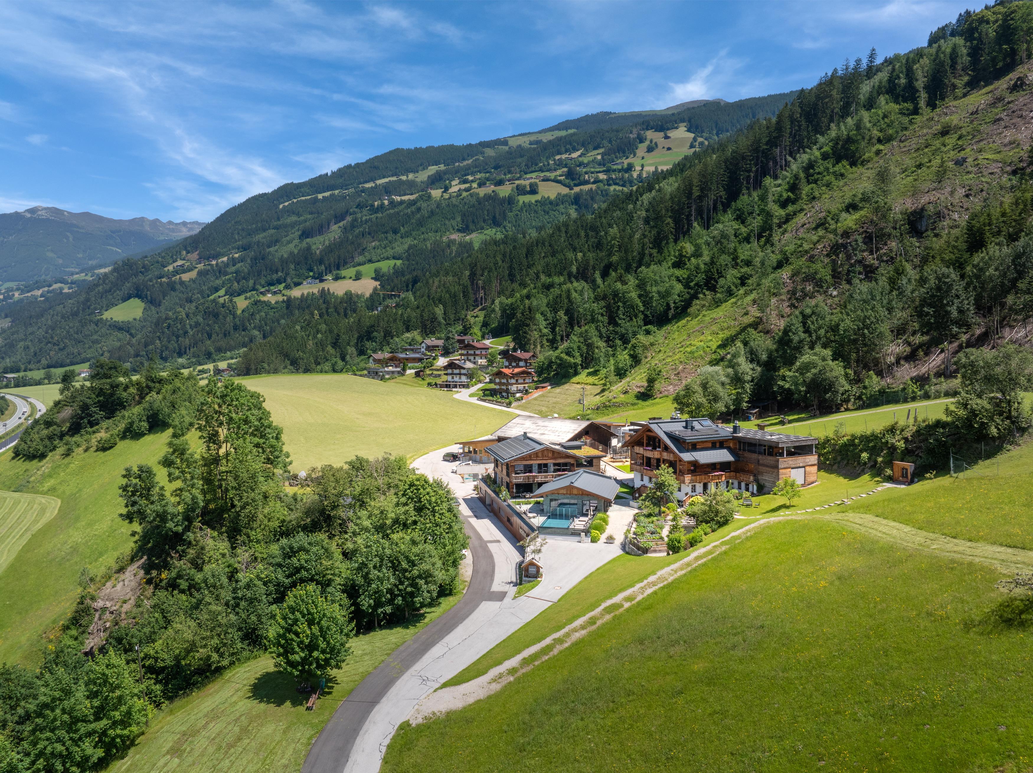 B 169 - Afslag Zell Noord - linksaf richting Zillertal Arena - vanaf Zillertal Arena ongeveer 600m op de Bundesstraße weer richting dalzijde - halverwege de kleine straatheuvel rechtsaf - 5e huis