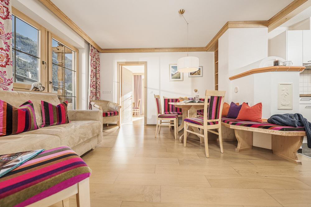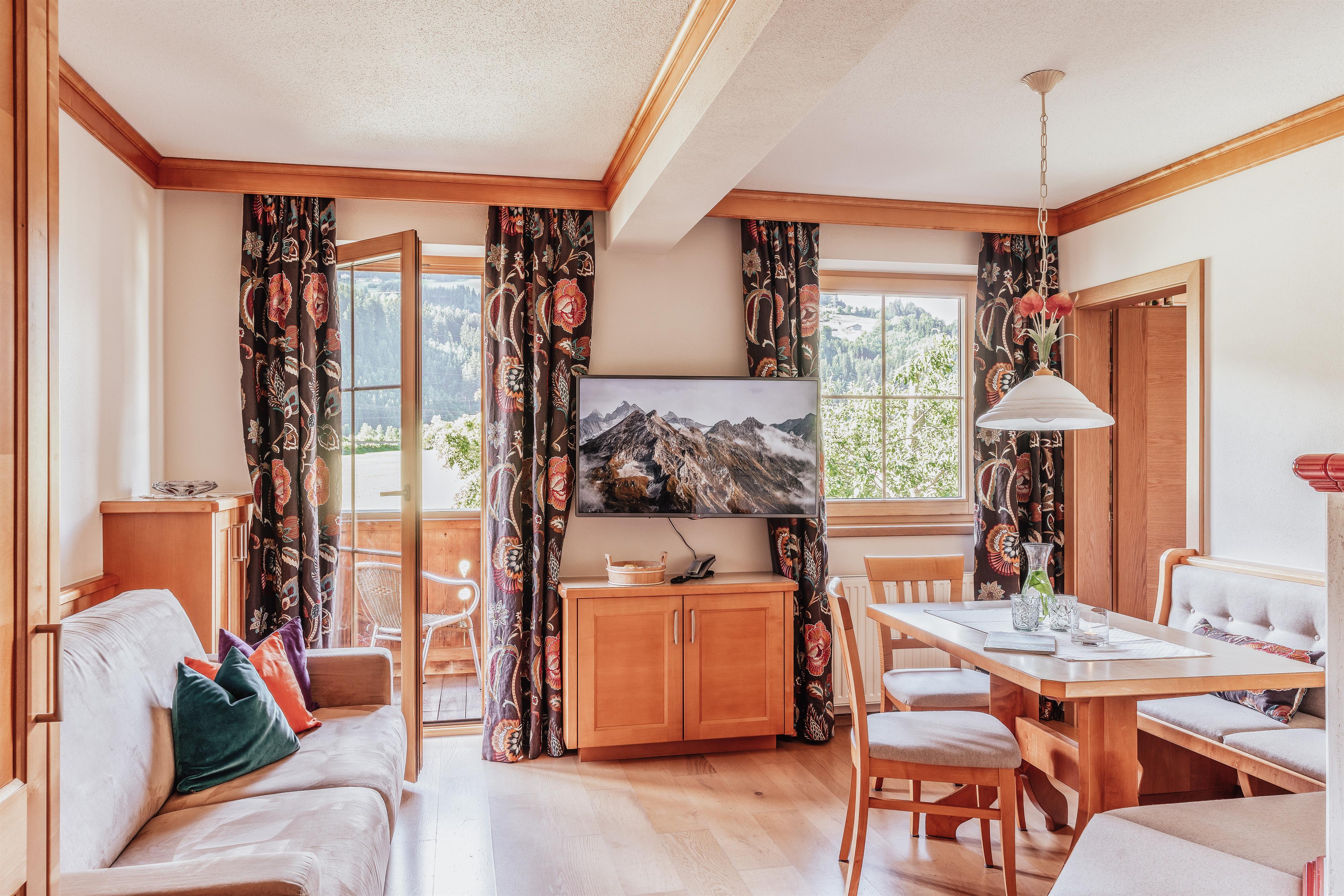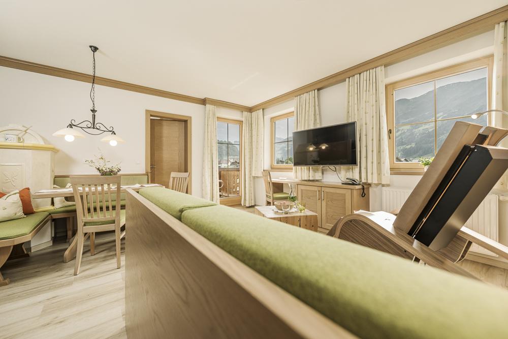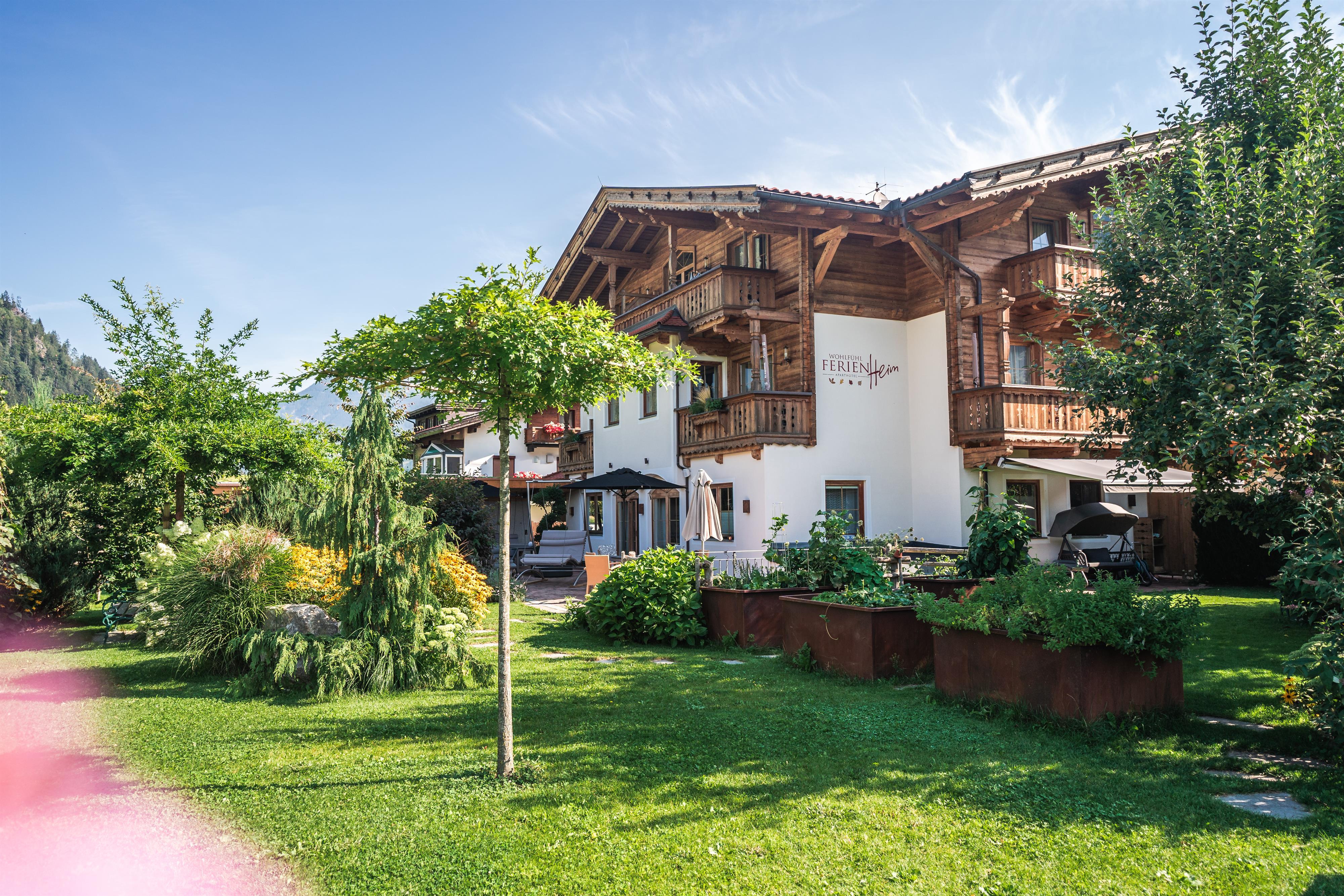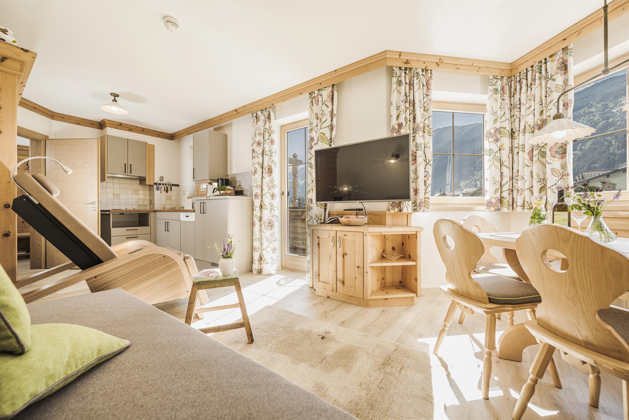4-sterren welzijn-aparthotel in de Zillertal Arena - 2 minuten lopen van de dalstation. De perfecte mix van modern comfort en smaakvol design zorgt voor een onvergetelijke woonervaring. Het vele hout geeft onze gezellige appartementen een gezond binnenklimaat met 100% welzijnfactor. De perfecte retraite voor een romantische vakantie met z'n tweeën of voor een avontuurlijke FERIEN-verblijf met het gezin. Ontspannende uren op ons zonneterras met uitzicht op de tuin.