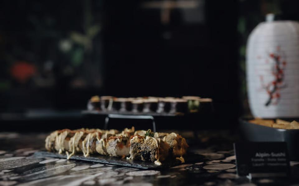 Verre-Oosterse gastronomie ontmoet een alpiene sfeer: bij ons sushibuffet wacht u een verfijnde selectie van vers bereide sushi-specialiteiten. Of het nu gaat om klassieke maki, creatieve rolls of fijne nigiri – liefhebbers van de Japanse keuken komen hier volledig aan hun trekken. Aangevuld met verse bijgerechten, aromatische dips en een vleugje exotiek beleeft u een avond vol smaak en variatie. Een culinair hoogtepunt dat garant staat voor afwisseling en genieten.
