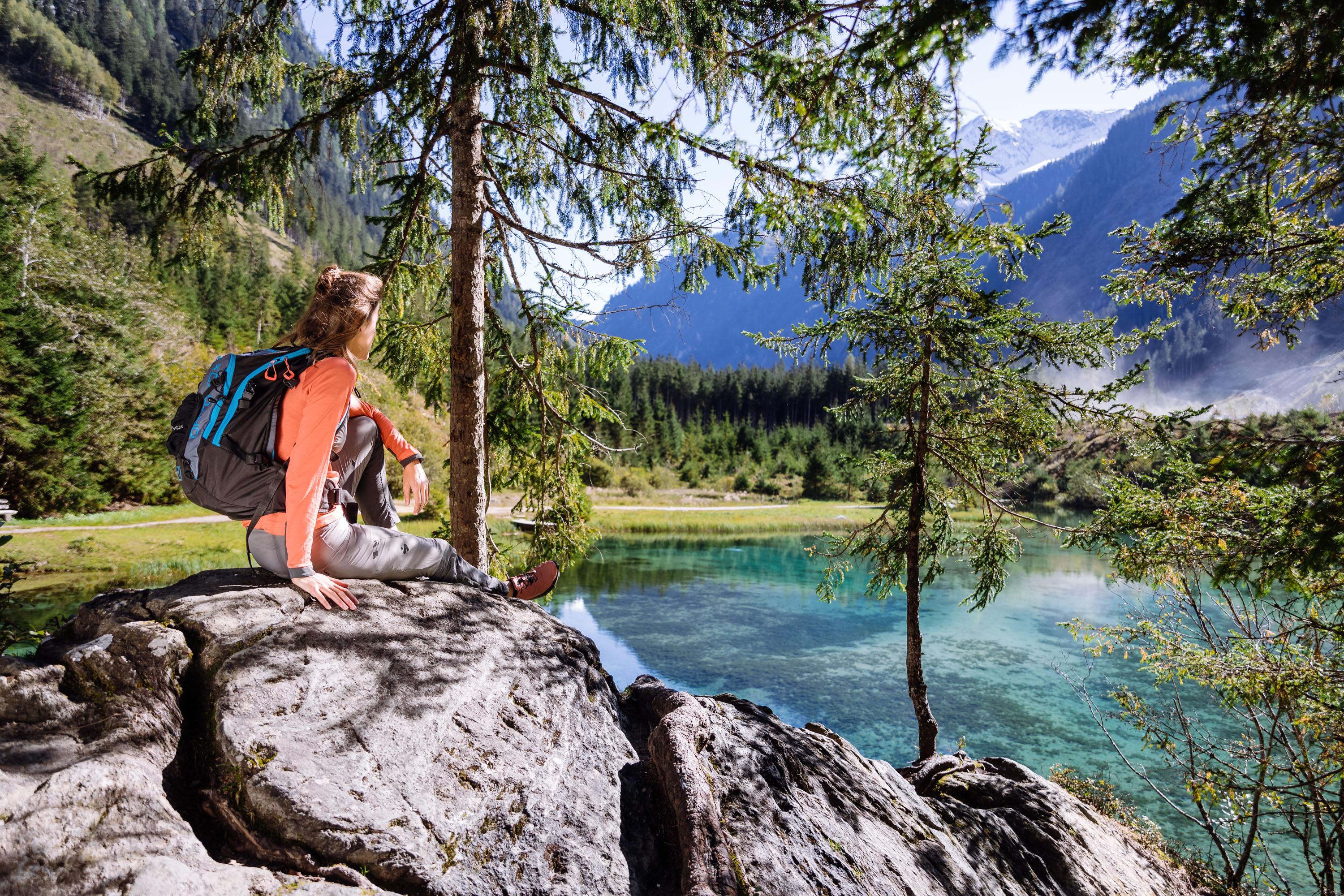 We fietsen langs de Tauernfietspaden richting Obersulzachtal. Bij de ingang van het Obersulzbachtal, ingebed in een rustige bosniche, nodigt het idyllische meer uit om te blijven, te genieten - en op warme dagen zelfs om af te koelen.