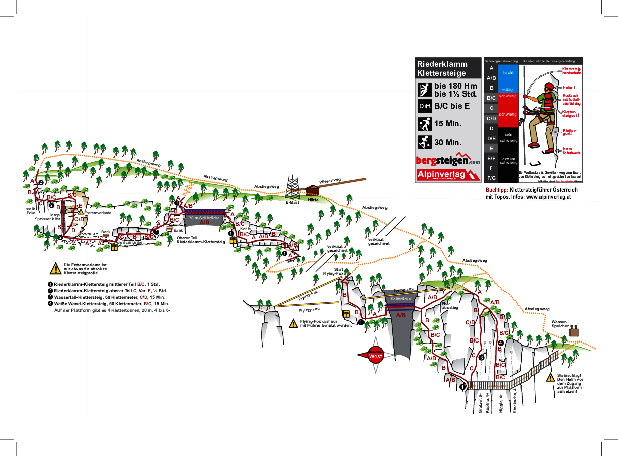 Riederklamm-Klettersteig, 280 m, B/C, 1 h.