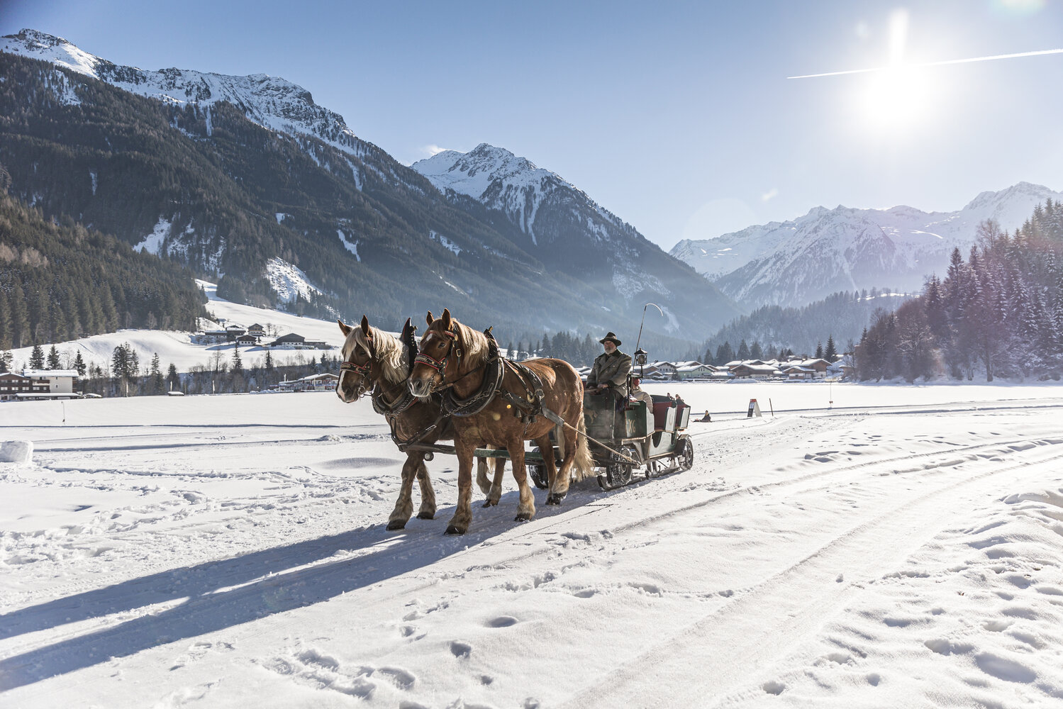 Pferdeschlittenfahrt im Winter