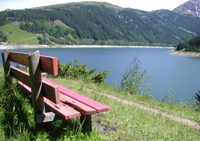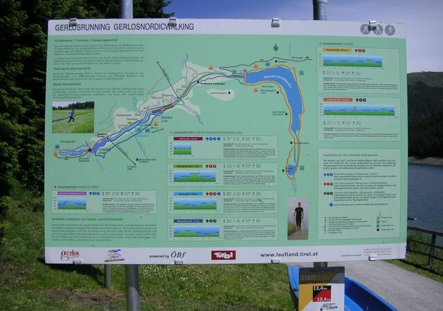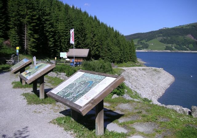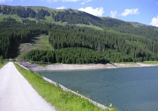 Streckenverlauf: Vom Startpunkt entlang der Nordseite des Stausees über Wald- und Wiesenwege bis zur Brücke bei der Schütthofalm. Zurück Richtung Start am See entlang, vorbei an den Almen und dem Entspannungspunkt und am Ende noch über die Dammkrone.