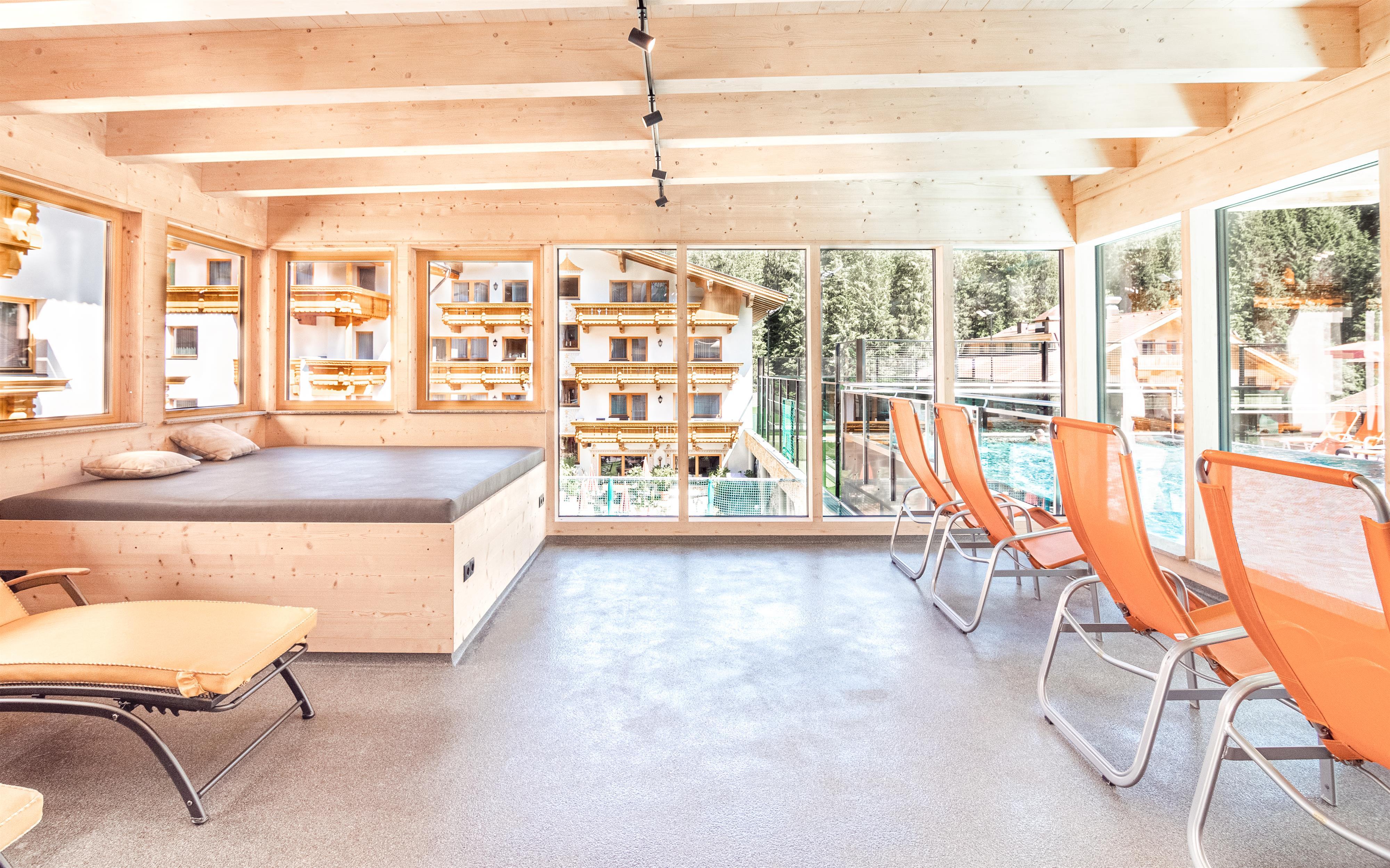 Schöpfen Sie neue Energie in dem großzügigen 1200m² großen Wellnessbereich im Hotel Alpenhof. Genießen Sie unsere Saunen, das Dampfbad und den Salzwasser-Whirlpool. Zusätzlich bieten wir Ihnen Badevergnügen in einem der größten Hotel-Hallenbäder im Zillertal.