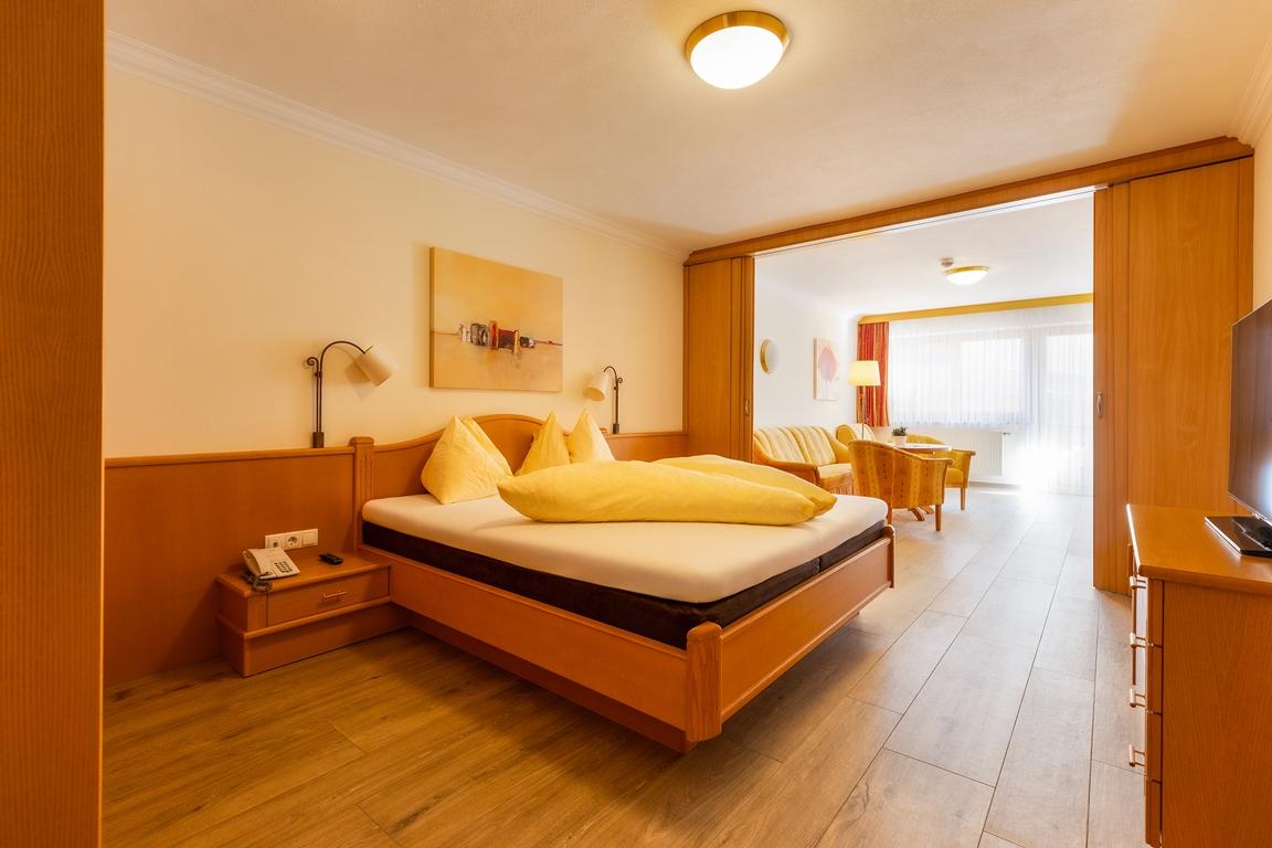 Unsere komfortablen Suiten verfügen über einen Wohn-/Schlafraum, ein separates Schlafzimmer sowie teilweise extra Kinderzimmer. Außerdem bieten wir moderne großzügige Ferienwohnungen für 2 bis 12 Personen mit Echtholz-Parkett an.