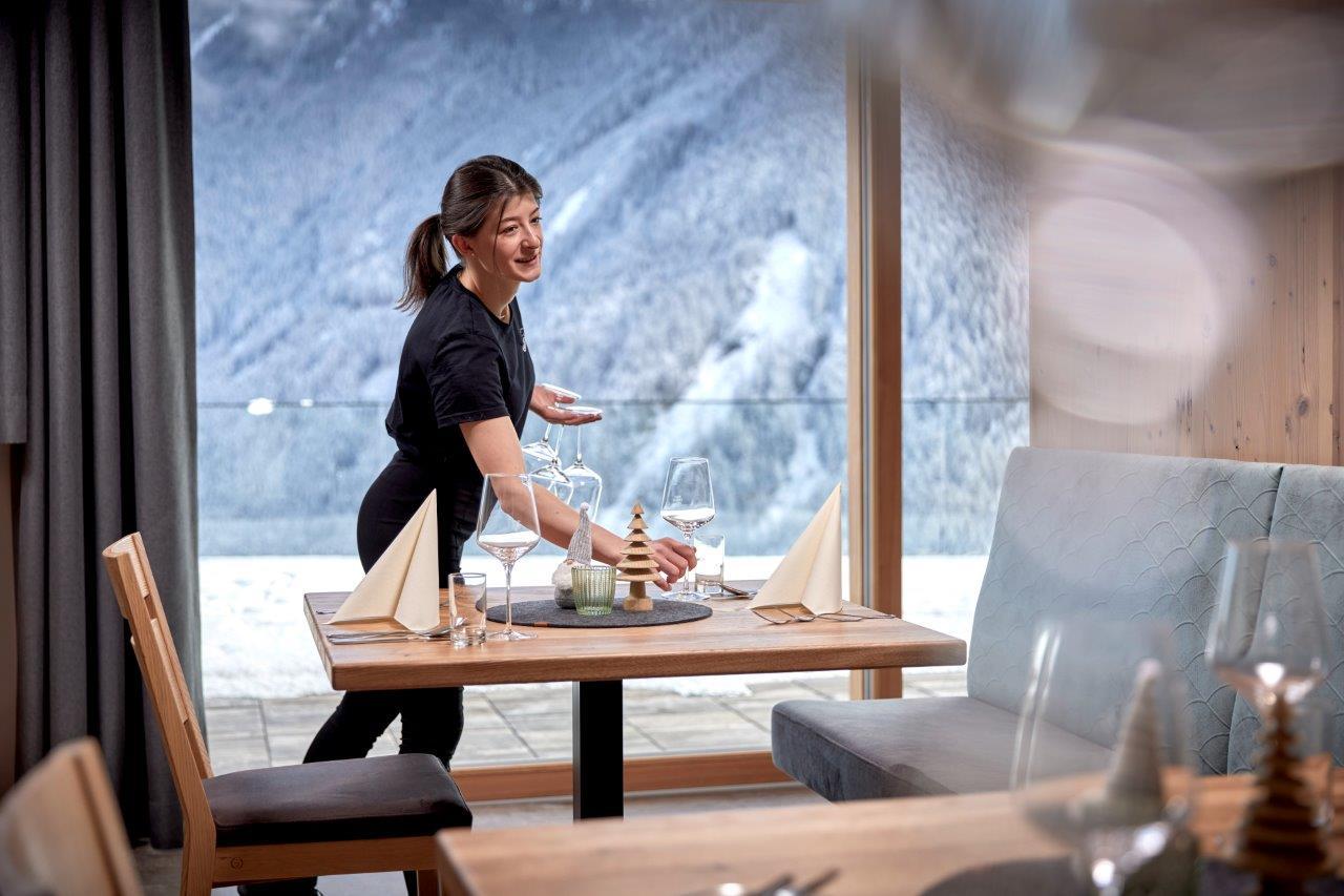 Sonnenterrasse und Panoramarestaurant - Produkte großteils aus regionaler Landwirtschaft.