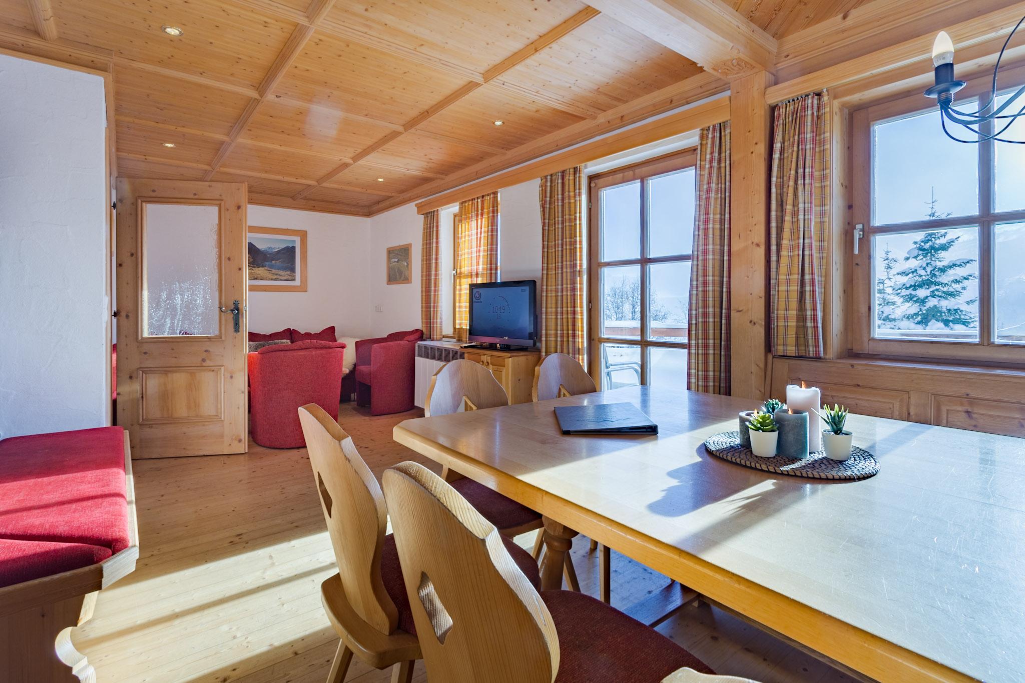 Gemütliches, freistehendes 6-Zimmer-Chalet, ca. 160 m². Schöne Südhanglage mit sonniger Terrasse und Balkon. Direkt an der Piste! Genießen Sie den herrlichen Ausblick auf den Plattenkogel und die Reichenspitzgruppe. Lassen Sie sich vom faszinierenden Panorama verzaubern.