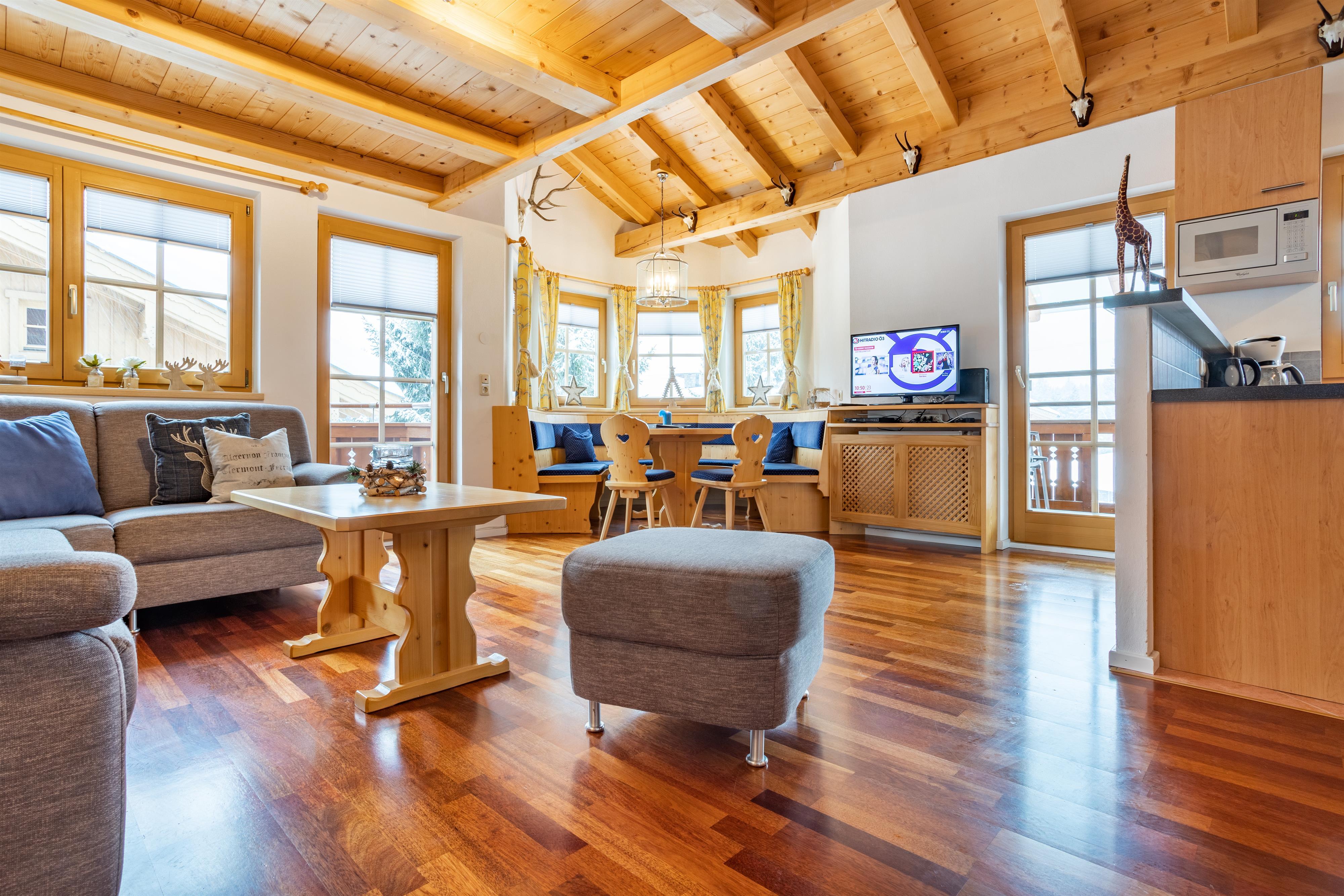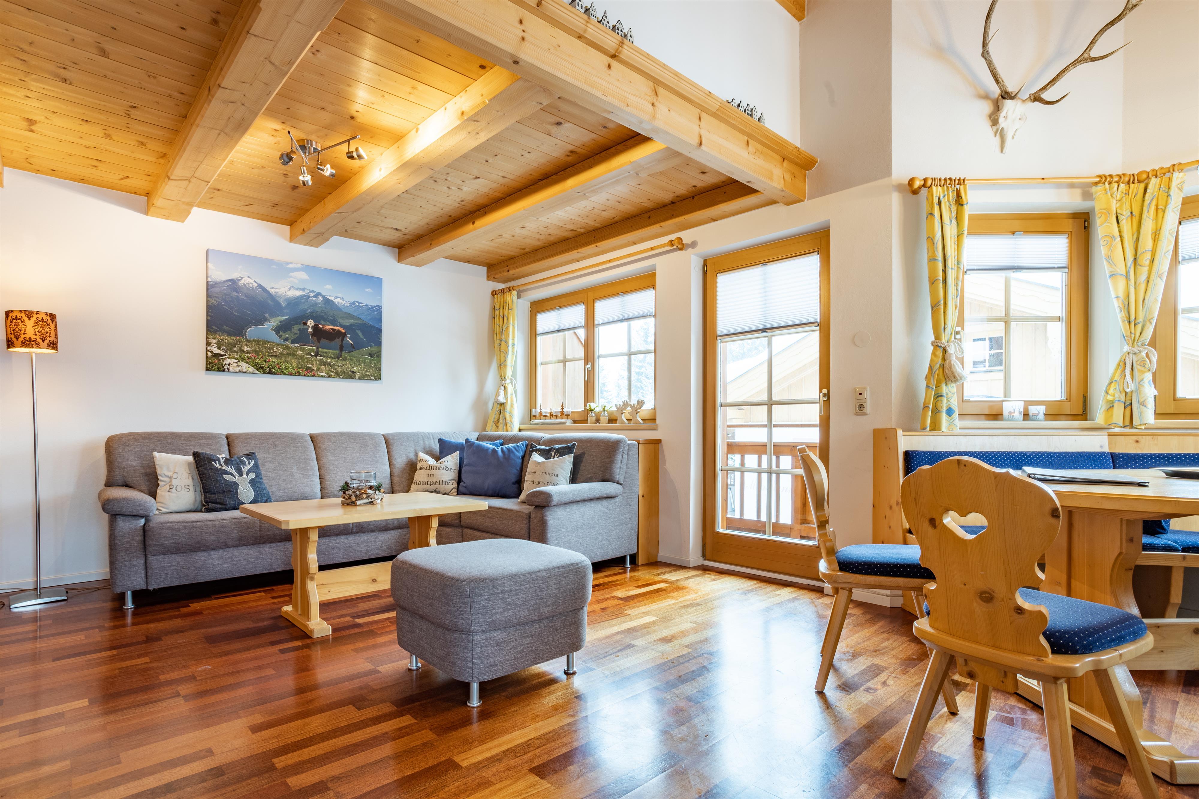 Wunderschönes 5-Zimmer-Chalet direkt an der Märchenwald-Piste! Das Chalet ist in zwei Teile geteilt, wobei sich das Haus Märchenwald auf der rechten Seite befindet. Dieses herrliche Chalet mit 4 Schlafzimmern ist ca. 150 m² groß und bietet Platz für 8 Personen. Es verfügt über eine nach Süden und Westen ausgerichtete Terrasse und einen Balkon. Genießen Sie den herrlichen Blick auf den Märchenwaldhang und das Bergpanorama der Reichenspitzegruppe und des Plattenkogels.