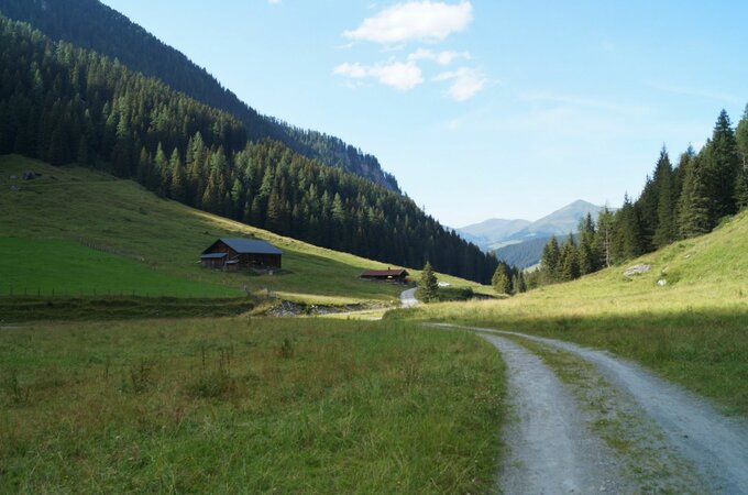 Die herrliche Wanderung startet beim Musikpavillon, von wo aus der flach ansteigende Wanderweg Nr. 511 in das Schönachtal führt. Nach kurzer Gehzeit erreicht man die Jörgleralm (1.300 m) und weiter folgend die Stinkmoosalm (1.350 m) mit einem atemberaubenden Blick über den Talhintergrund. Folgt man dem Wanderweg am rauschenden Schönachbach entlang, kommt man nach ca. 1 Stunde zur Jausenstation Lackenalm (1.400 m). Danach biegen Sie bei der Abzweigung Issalm rechts auf den Wanderweg Nr. 7 ab. Der immerzu steigenden Forststraße folgend erreichen Sie nach ca. 1,5 Stunden die urige Stackerlalm (1.850 m). Von hier genießen Sie einen prachtvollen Blick auf den Gletscher Schönachkees!