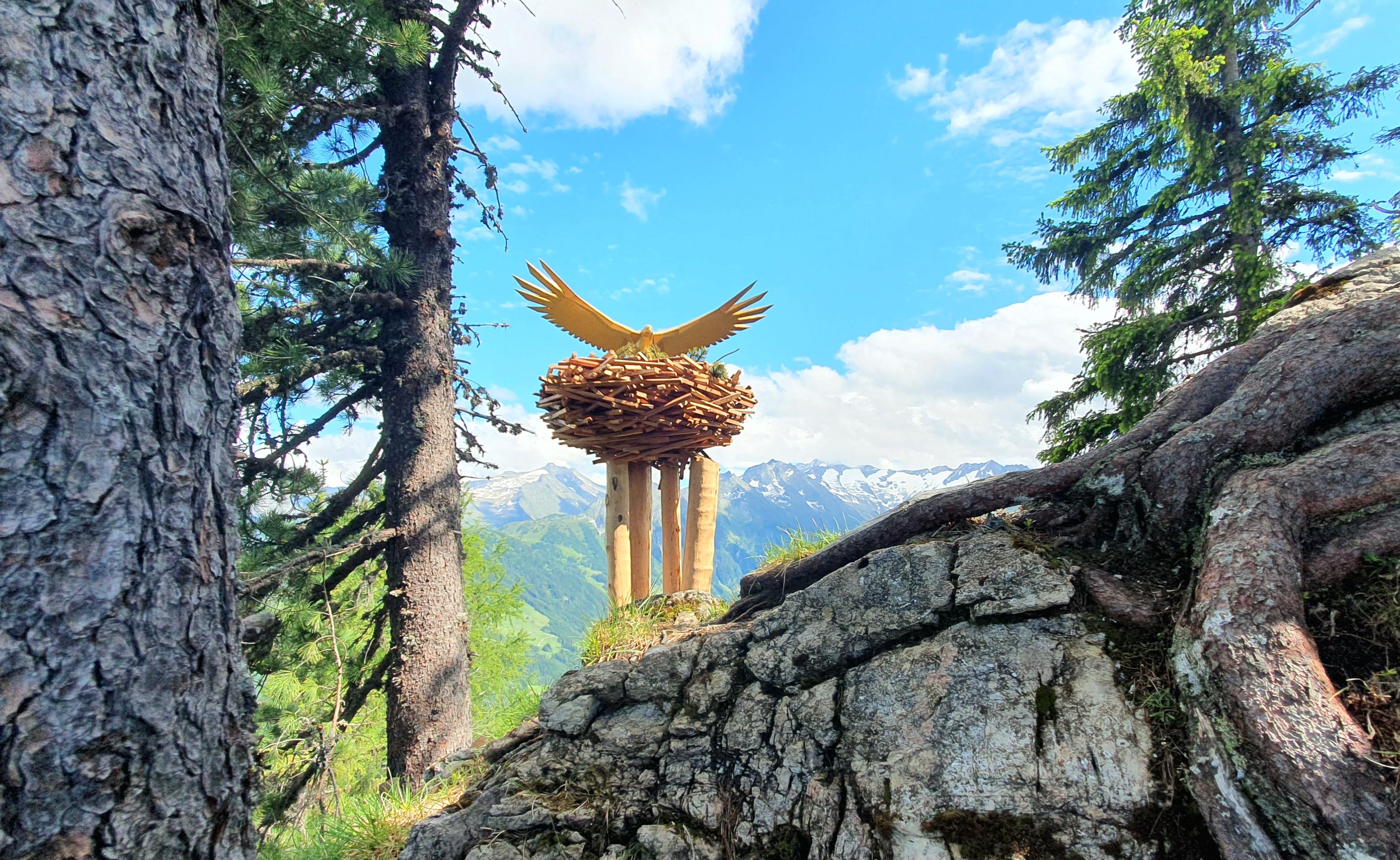 Ganz oben thront der goldene Adler von Gerlos – ein stolzes Symbol der Freiheit.