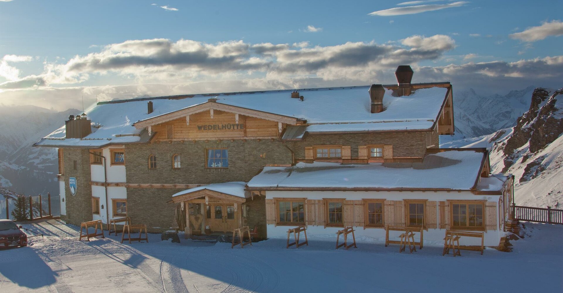...oder Hüttengaudi vom Feinsten! In traditioneller und zugleich extravaganter Chalet-Atmosphäre laden wir Sie zum Verweilen ein. Und natürlich auch zum fröhlichen Zechen und Schlemmen! Vom "Tafelspitz" zum "Kaiserschmarren" bieten wir unseren Tagesgästen einiges an heimischen Schmankerln. Aufgrund "ausgeklügelter Stufenbauweise" der Sonnenterrasse genießen Sie inmitten der Hausberge Wimbachkopf und Marchkopf - den ungetrübten Blick auf die Dreitausender der Zillertaler Alpen. In der neuen "Sunbed-Area" sind alle willkommen, die sich nach 181 ski-optimalen Pistenkilometern genüsslich bei House-Tunes entspannen möchten!