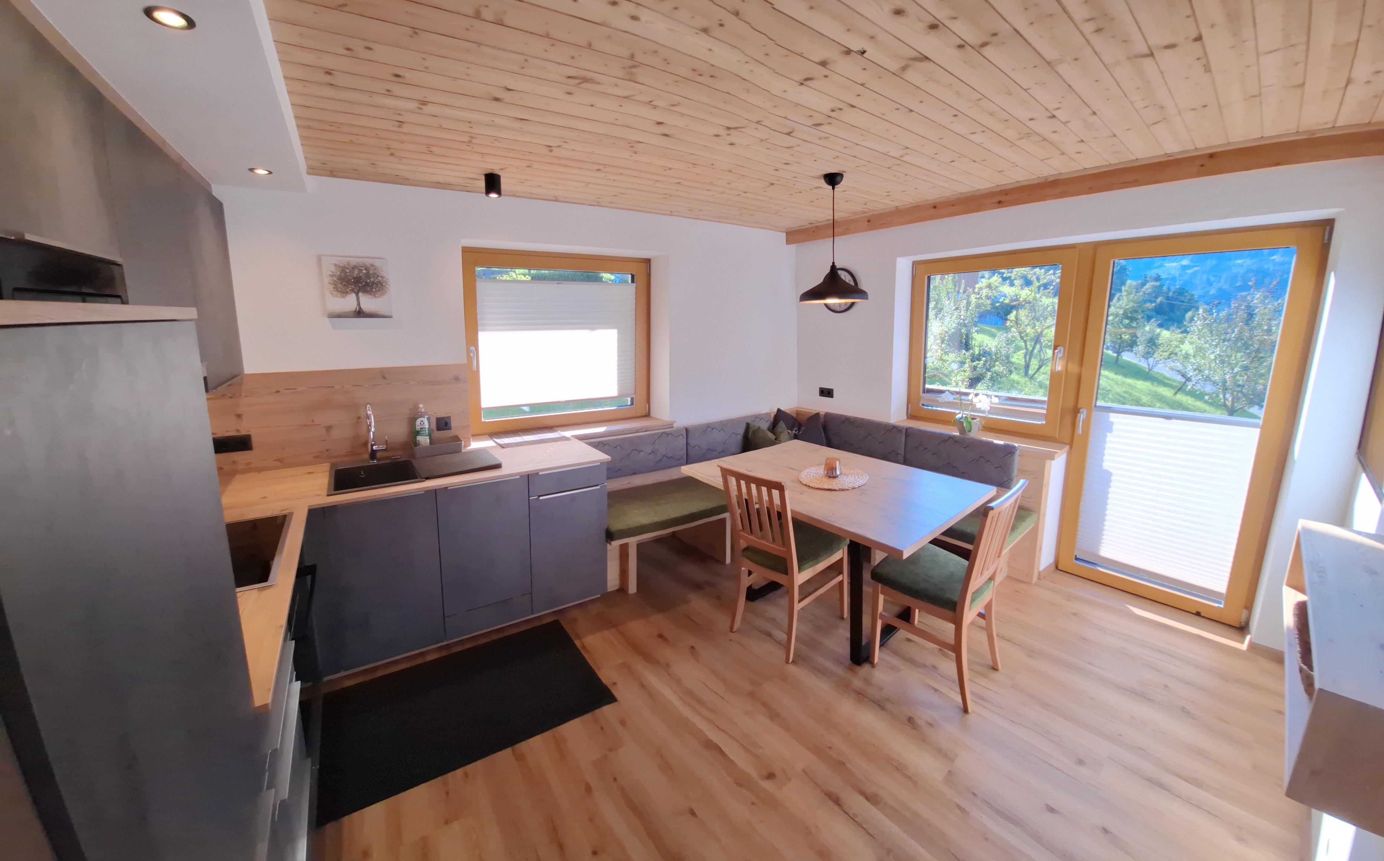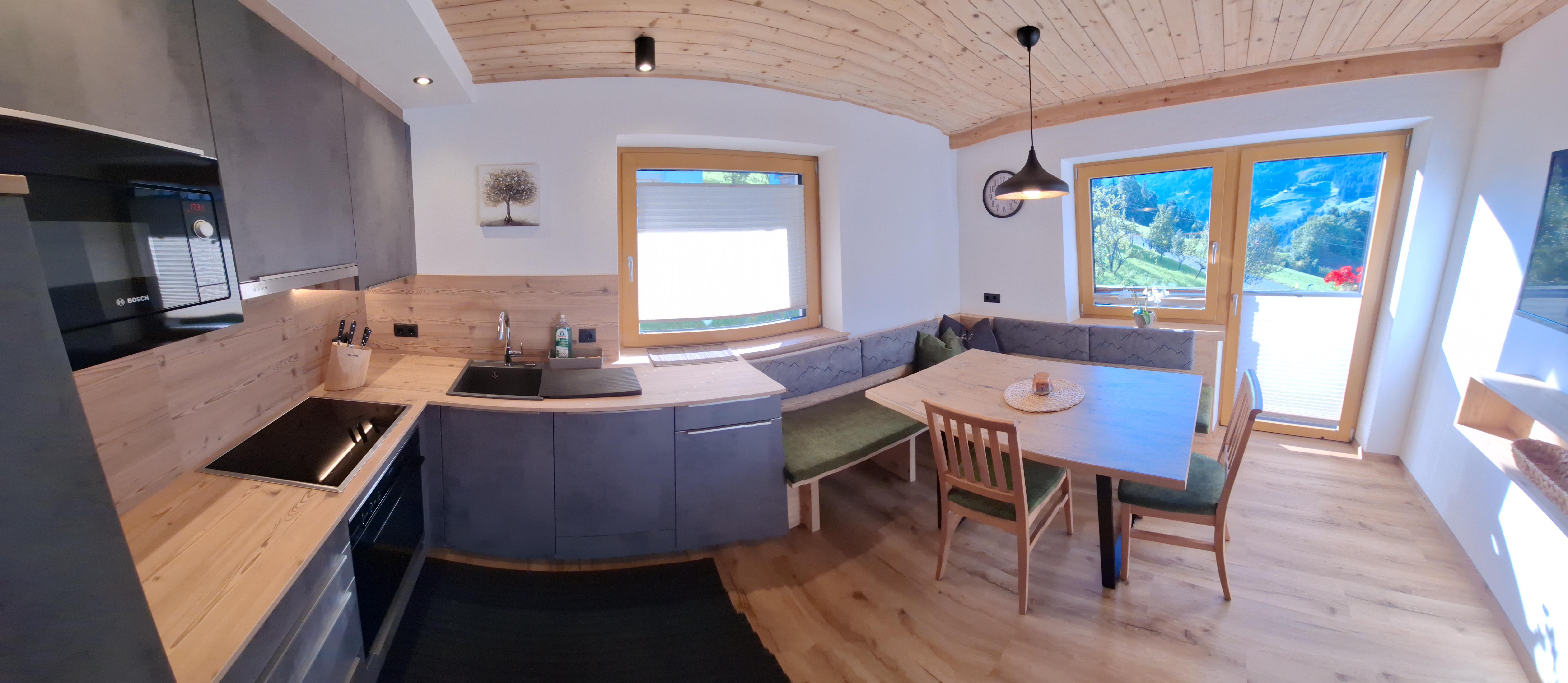 Die Ferienwohnung Unterholz bietet kuschelige 45 m² Wohnfläche im gemütlichen Tirolerstiel. Sie befindet sich im zweiten Obergeschoss des Haus Panorama. Genießen Sie die Ruhe abseits der Straße und genießen den Sonnenaufgang aus der Ersten Reihe. Sie finden eine gemütliche Küche, ein Doppelzimmer, ein Einzelzimmer sowie ein geräumiges Bad vor. Fußbodenheizung in allen Räumen. Ebenso erwartet Sie ein Balkon mit schönem Blick auf die umliegenden Berge. Die Küche ist mit allen, wichtigen Utensilien ausgestattet: Herd mit Backrohr, Kühschrank, Geschirrspüler, Kaffeemaschine, Mikro, Wasserkocher, Geschirr, Töpfe, Pfannen sind ebenso vorhanden. TV`s finden Sie im DZ und in der Küche.